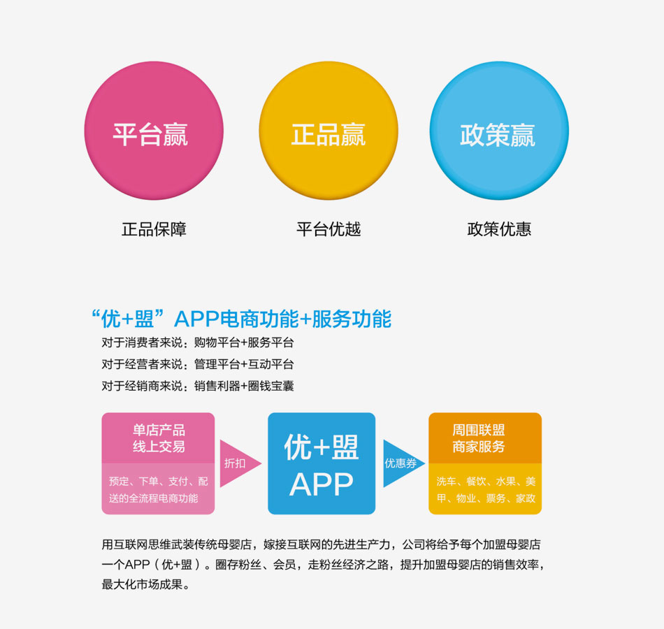 優(yōu)家寶貝母嬰特許連鎖品牌, “專注母嬰,用心服務(wù)”作為核心價(jià)值理念,服務(wù)于廣大創(chuàng)業(yè)加盟者。為孕婦和0-6歲嬰幼兒提供優(yōu)質(zhì)產(chǎn)品與專業(yè)服務(wù)。以“知名產(chǎn)品+自有品牌”、“專業(yè)服務(wù) +教育內(nèi)容”,打造出適合中國母嬰消費(fèi)群體的產(chǎn)品服務(wù)體系。